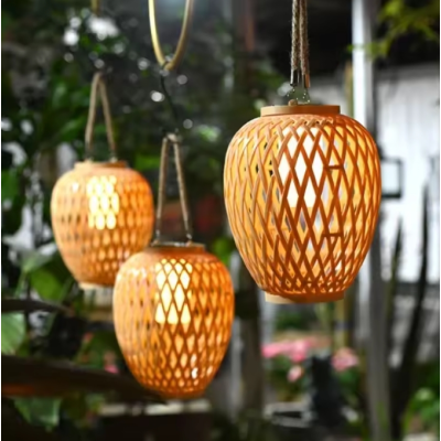 YANXIZAO Bamboo Woven Pendant Solar Garden Light – Decorative Hanging Outdoor Lantern with Warm Glow for Patio, Balcony, Yard